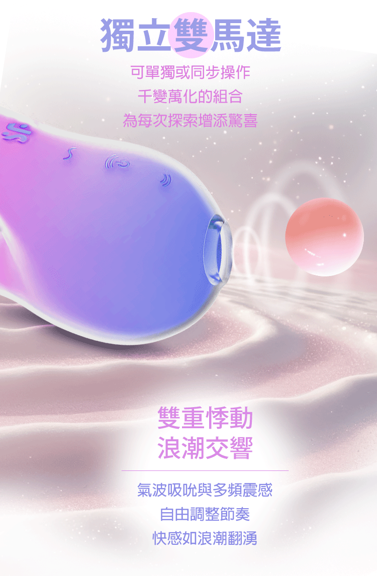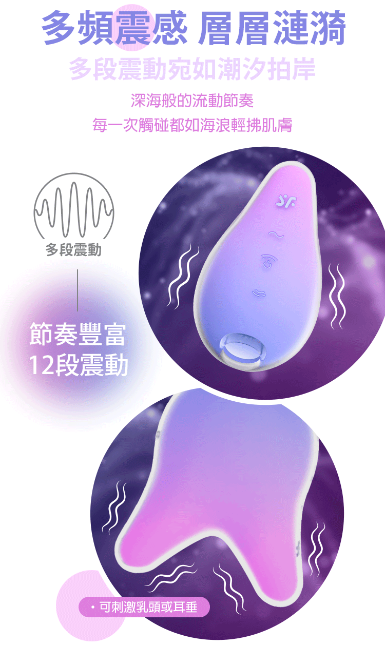 宛如美人魚的親吻,潮起浪湧般的悸動,將吸吮與震動完美結合,帶來雙重愉悅。