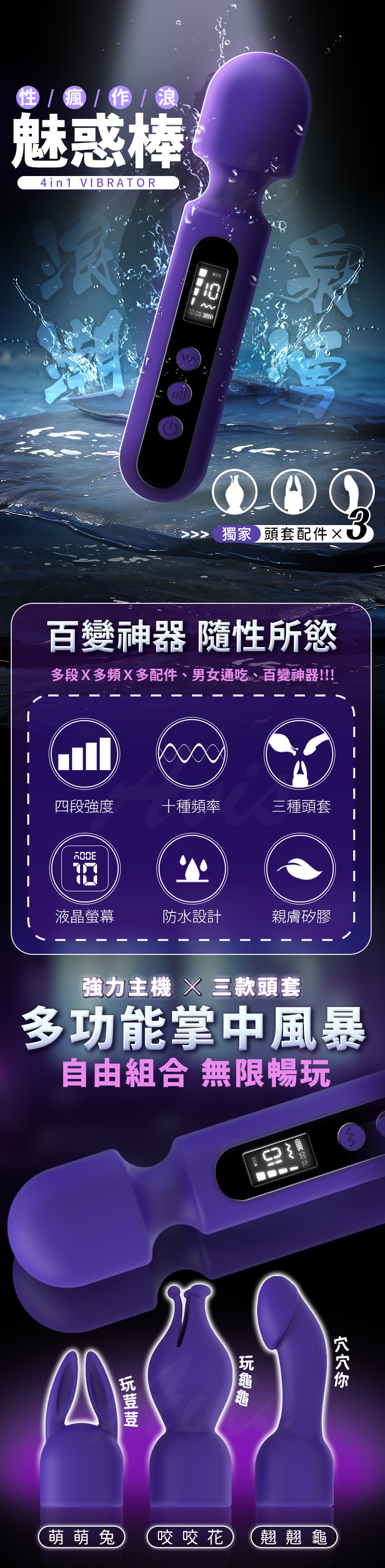 產品名稱:魅惑棒|AV強力震動 三頭套|液晶顯示按摩棒